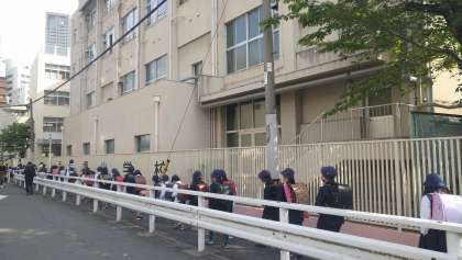 西船場小学校では現在、近くに住んでいる人たちで「分団」をつくり、朝は集団登校をしています。校区には、大きく交通量の多い道路や、また反対に狭い道もあります。