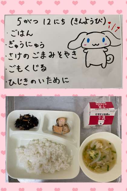 金曜日は、ご飯によく合う『さけのごまみそ焼き』が登場しました。角切りのさけをねりごま、砂糖、うすくちしょうゆ、白みそで下味をつけ、いりごまをふり、焼き物機で焼き上げています。
