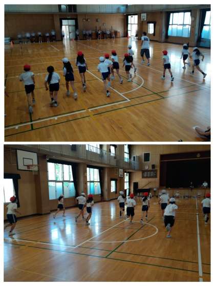 今日は全体練習として、列の並び方や心構え、ラジオ体操などをしました。
