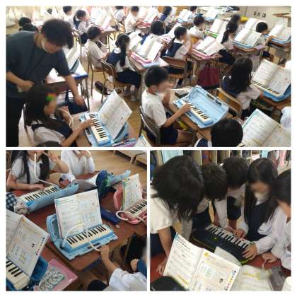 音楽では、鍵盤ハーモニカで「旋律づくり」に取り組み、いよいよお待ちかねのリコーダーに挑戦していきます。きれいな音色が出るでしょうか‥‥?