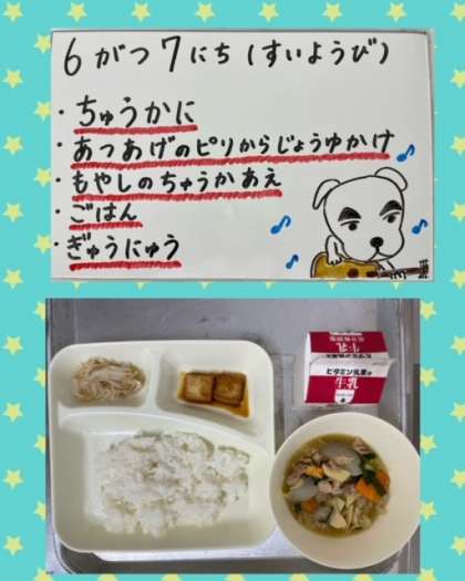 水曜日の『中華煮』は、豚肉を主材に、キャベツ、たまねぎ、たけのこ、にんじんを使用した中華風の煮ものです。