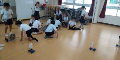 クルマの進んだ距離も巻き尺で測り、算数で学んだ知識が活かされますね♪