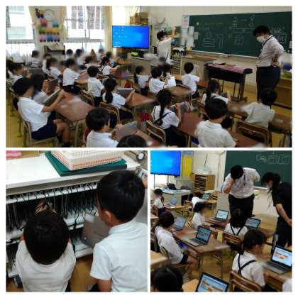 今日は4クラスとも、初めて「一人1台端末」という『タブレット』を動かしてみました。