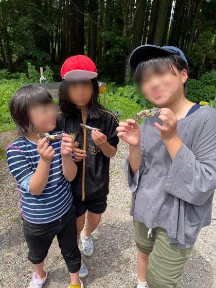 沢登り、ブッシュクラフトをしている間に、ふっくらこんがりニジマスが焼き上がりました!