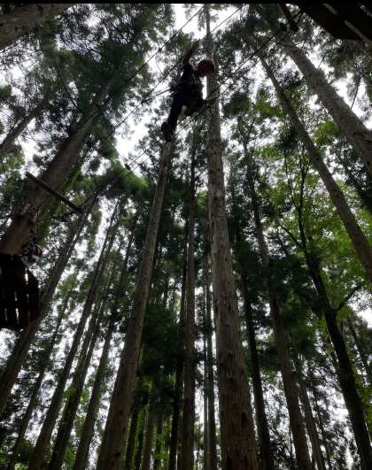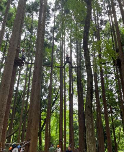 高くて長〜いジップラインを見事にこなしています!!