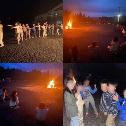 先生たちも列車の中に混ざり、最後は大きな1つの円になりました。