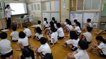 また、体の成長を調べるために、発育測定も行いました。みんな身長が着々と伸びていましたが、保健室の先生からは「姿勢に気をつけてね」というお話もありました。