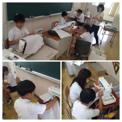小さくて苦手な糸通しに苦戦しながら、ミシンを使ってナップサックを作っています。これを完成させ、10月の修学旅行に持っていけるといいですね♪