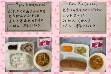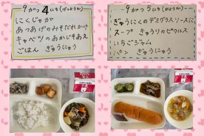 木曜日の『豆乳マカロニグラタン』は、米粉のマカロニなどを使用し、牛乳の代わりに豆乳を使用し、小麦アレルギー、乳アレルギーの児童も食べることが出来るように工夫された献立です。