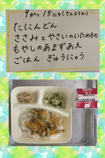 金曜日の『他人丼』は、牛肉とたまねぎなどの野菜を甘辛く煮て、彩りに青ねぎを加え、卵でとじた具をご飯にかけていただきます。鶏卵の個別対応献立となっています。