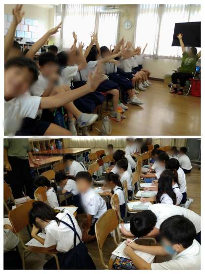 の三つを合言葉に、劇を中心としながら体感的に学んでいきました。子どもたちは楽しみながらとても集中していて、意見を話そうと手を挙げるのも非常に多かったです。