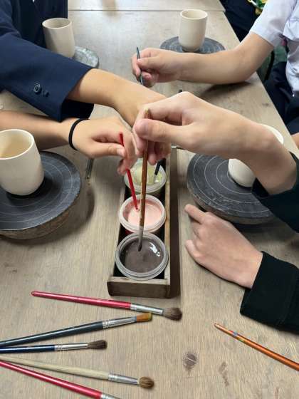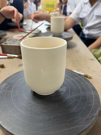 今から5色の焼き物用の絵の具で湯呑みに絵を描いていきます。