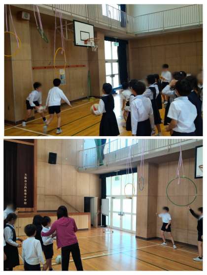 大きさの違うフープを使い、またユラユラと的が揺れてしまうこともあって、みんな楽しみながらも一生懸命にボールを投げていました。さて、結果やいかに!??