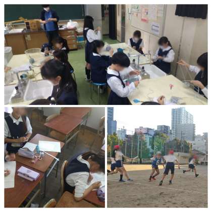 運動場で行っている陸上クラブは、バトンパスに気を配りながらリレーをしています。いろんなクラスや学年が入り交じる、クラブ活動ならではですね♪