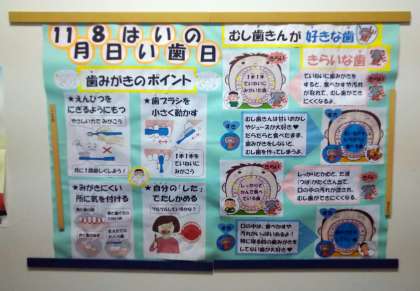 保健室の前の廊下には、歯磨きのポイントなどをポスターにしてまとめています。また通りがかった際に見てみてくださいね。
