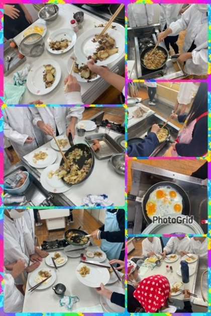 じゃがいもの皮むきに苦戦していましたが、班ごとに協力しあいながら仕上げていました。どの班も美味しそうなジャーマンポテトや目玉焼きが出来上がっていました。
