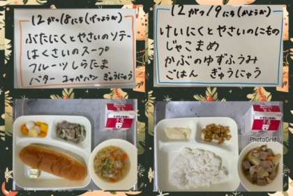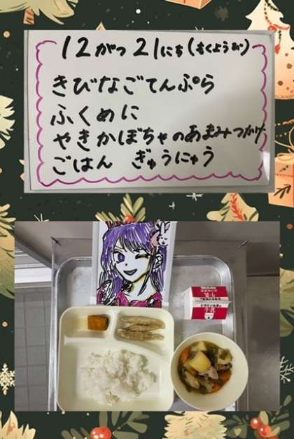 火曜日は児童に大人気の『じゃこ豆』が登場しました。ゆでたちりめんじゃことでんぷんをまふして揚げた大豆に、甘辛いタレをからませています。ごはんにもとても良く合う一品です。