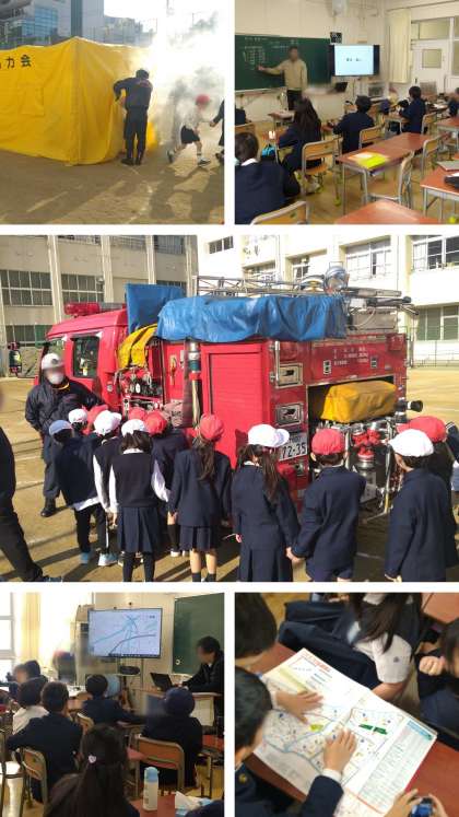 2時間目からは、西区役所や消防局など、いろいろな方に協力していただき、各学年に応じた防災学習に取り組みました。