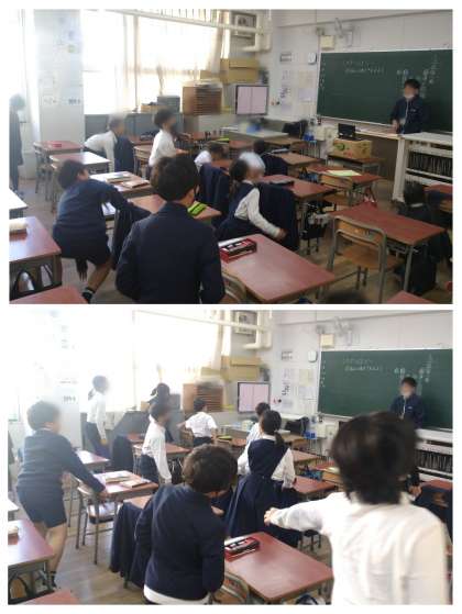 風邪等で体調を崩してしまっている児童もみられ、また雨で運動場が使えない・・・そんなときには、教室で体を動かそう!