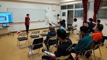 一つひとつは簡単な動きを、2つ同時に行ったり左右を逆にして行ったりして、認知機能を向上させる運動です。 先日には、教職員で研修会も開いています。