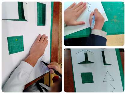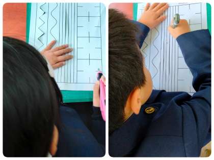 先週は、薄い紙で練習をしましたが、今週は画用紙でも練習しました。