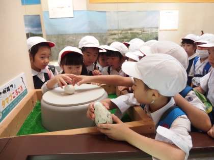 1年生は遠足で長居公園へ行ってきました。とても良い天気になり、子どもたちもうれしそうでした。博物館で、きょうりゅうの骨やアンモナイトの化石などを見学した後は、公園でお弁当を食べました。その後、どの子も思いっきり遊んで大満足でした。