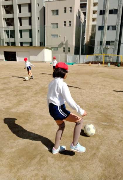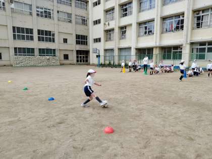 先日は、ドリブルをするときのコツについても考え、細かく蹴ること、顔を上げて進む方向を見ることなどに気づくことができました。