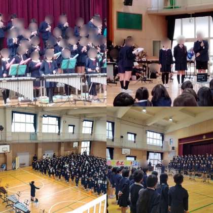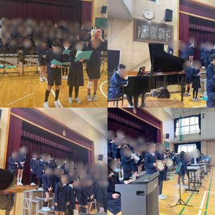 6年生からのプレゼントの合奏では、前半に“マリーゴールド”後半に“ミックスナッツ”。どちらも、これぞ6年生!といった迫力と素晴らしい演奏に、みんな釘づけでした。さすが6年生、かっこよかったです!