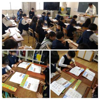 初めて触れる子も多いようですが、慣れてくると素早くできてきました。筆算や暗算のときと同じように、くり上がり・くり下がりがやはり難しそうです。休み時間にも進んで使っている子も見られました!