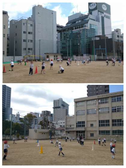 ふだんの休み時間にはボールを投げることしかしていないので、とても新鮮で、にこやかな笑顔がこぼれています!