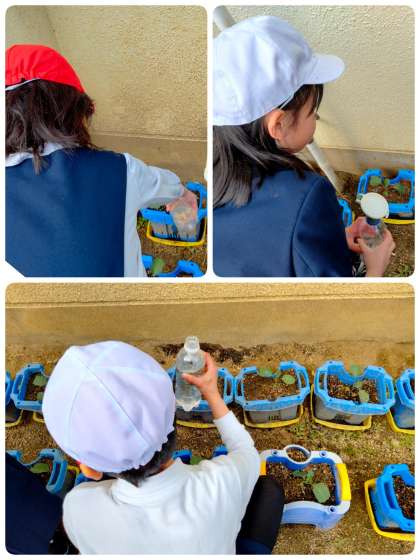 葉の数や色、形などよく観察してかんさつカードも書きました。水やりも忘れずに!