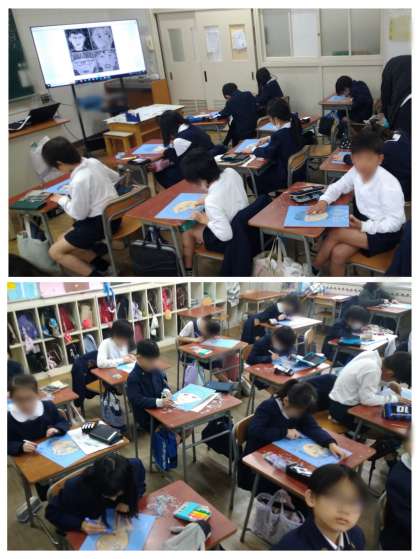 静まった教室のなか、集中の糸を切らさないよう、彫刻刀を使って作業を進めています。