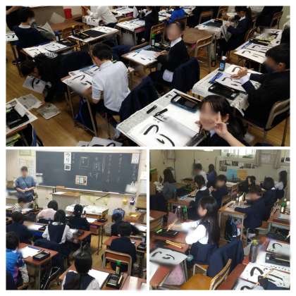 また小筆を使い、とても細い字で自分の名前も書いていきました。これはこれで集中した雰囲気のなか、授業を受けることができました。