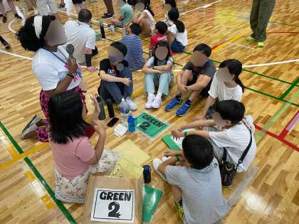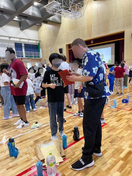 大阪市の高学年の希望児童が中之島小学校体育館に集まり、オールイングリッシュで活動を行いました。