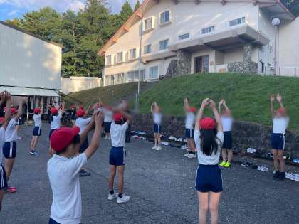 少しひんやりした空気を吸って、ラジオ体操でスッキリ!