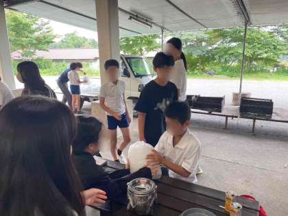 林間学習最後の活動、シャーベット手作りが始まりました。