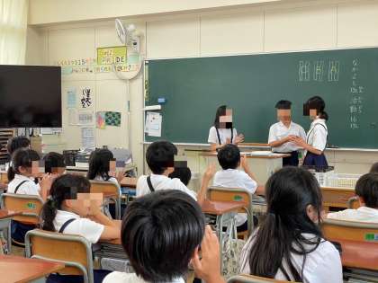 5時間目が始まると、放送の合図で6年生が1年生を迎えに行きます。手をつないで1年生の歩くはやさにあわせる6年生。うれしそうな、でも少しドキドキしているようなそんなすてきな表情がたくさん見られました。