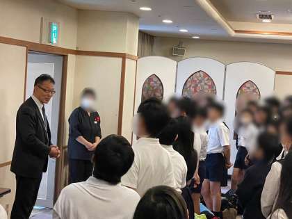 閉舎式をし、宿の方にお礼を伝えてバスに乗り込みました。