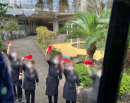 宿の方も赤いハンカチを振って、見送ってくださいました。