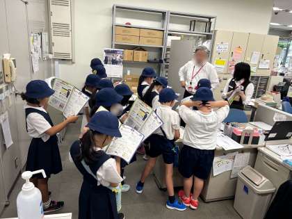 郵便局では、ふだん見ることのできない受付カウンターの向こうまで見せていただきました。