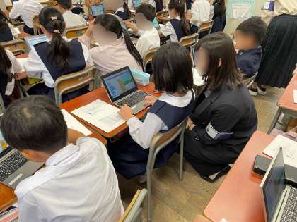 丁寧に教えていただきながら、どんどんマスターする子どもたち。他にも、ネットマナーやネット被害に合わないために注意することなども教えていただきました。