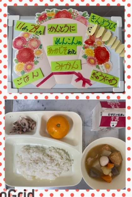 火曜日の『さといもの和風カレー汁』は、豚肉、さといも、たまねぎ、だいこん、にんじん、青みに青ねぎを使用し、だしこんぶとけずりぶしのだしの風味をきかせ、塩、カレールゥの素、こいくちしょうゆで味つけをした汁ものになっています。