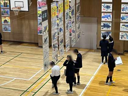 どの学年の作品も工夫をこらしたものばかりで、時間が過ぎても「まだ全部見れてない。」と延長するくらい真剣に鑑賞していました。