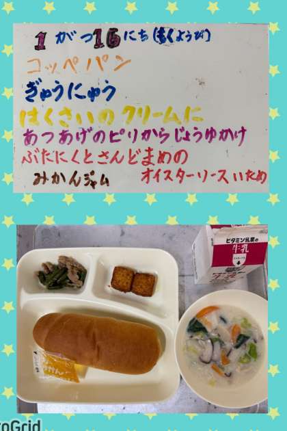 木曜日の『はくさいのクリーム煮』は、鶏肉、はくさい、たまねぎ、チンゲンサイ、にんじん、生しいたけを使用し、牛乳とクリームを加えて煮、でんぷんでとろみをつけた中華風のクリーム煮です。