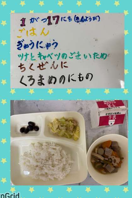 水曜日はお正月の行事献立でした。『ぞう煮』は、かつおぶしでだしをとり、白みそを多く使用した関西風のものです。鶏肉、白玉もち、さといも、だいこん、なにわの伝統野菜のきんときにんじん、青みにみつばを使用しています。