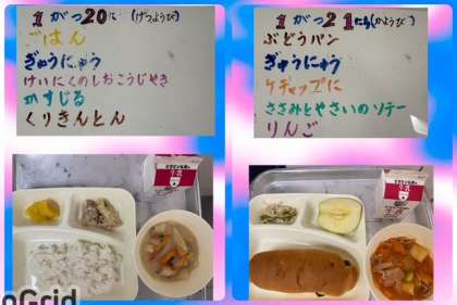 月曜日の『鶏肉の塩こうじ焼き』は、令和5年度の給食献立検討会議で開発された献立です。鶏肉に塩こうじで下味をつけ、たまねぎを混ぜ合わせて焼き物機で焼いています。