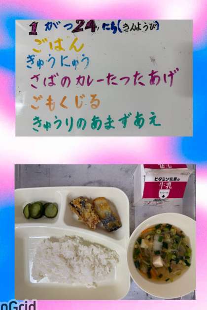 金曜日の『さばのカレーたつたあげ』は、1人2切れのさばにしょうが汁、料理酒、こいくちしょうゆ、カレー粉で下味をつけ、でんぷんをまぶして油で揚げています。
