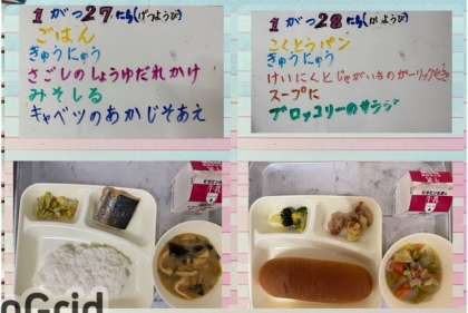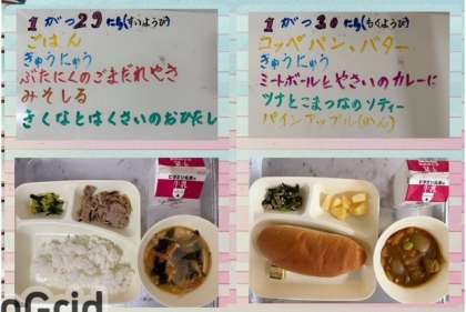 水曜日の『豚肉のごまだれやき』は、豚肉に練りごま、砂糖、料理酒、みりん、こち口しょうゆで下味をつけ、たまねぎを混ぜ合わせ、いりごまをふり、焼き物機で焼いています。
