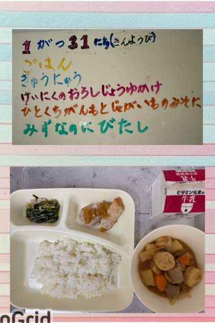 金曜日の『鶏肉のおろしじょうゆかけ』は、料理酒で下地をつけ、焼き物機で焼いた鶏肉に、だいこんおろし、みりん、うすくちしょうゆ、ゆず果汁で作ったタレを配缶時にかけています。