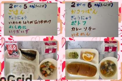 水曜日は、節分行事献立でした。『いわしのしょうがじょうゆかけ』は、料理酒で下味をつけた開きのいわしを焼き物機で焼き、しょうがの風味をきかせたタレをかけています。